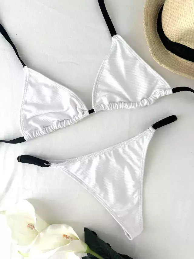 ❄️ Minimalista, sofisticada y siempre en tendencia. La combinación de blanco con detalles en negro le da a esta bikini un toque chic y atemporal, ideal para quienes aman la moda sin esfuerzo.