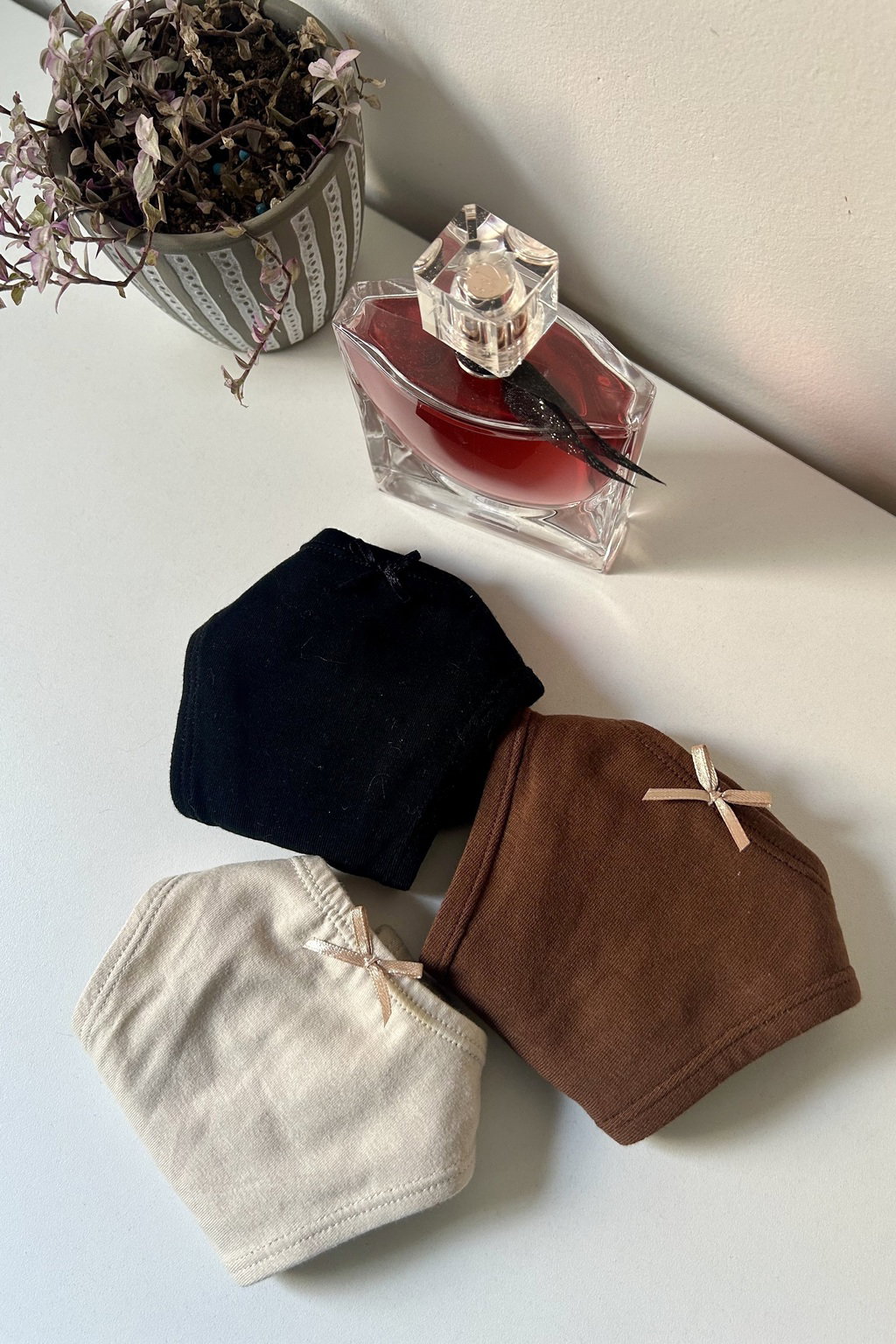 Este pack incluye: 3 less en tonos clásicos: Negro - Chocolate - Beige
