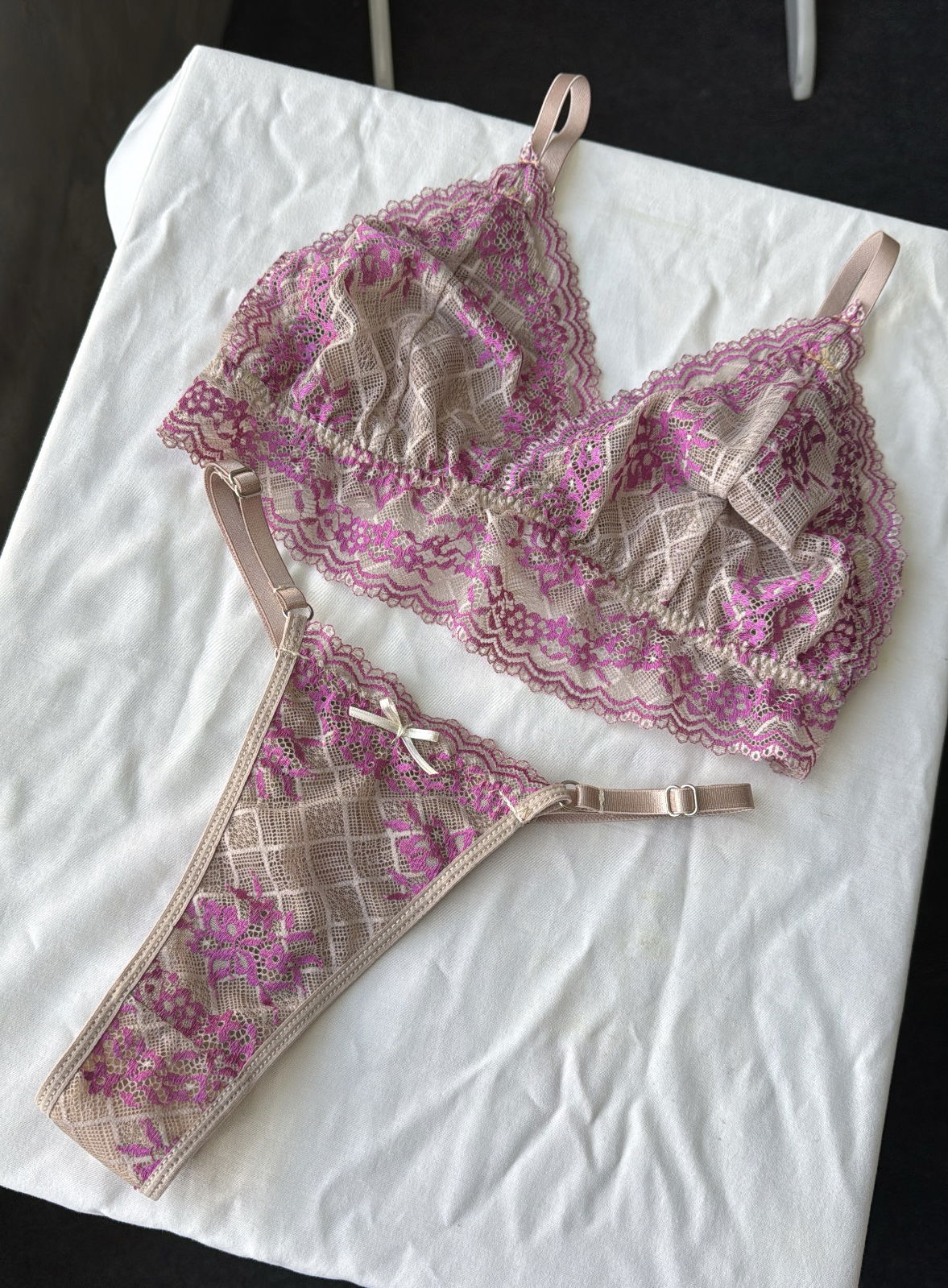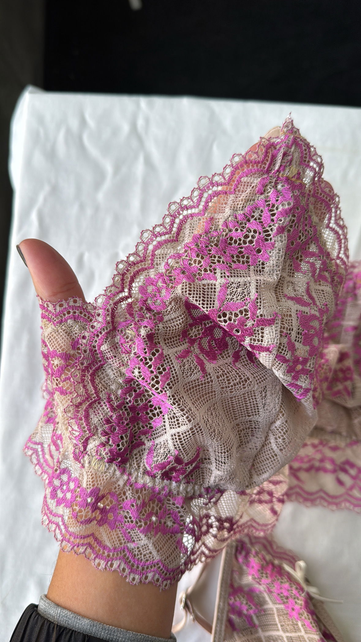 * Ambas piezas cuentan con elásticos de retención, un detalle clave para un buen ajuste y para mantener la forma del conjunto con el uso y los lavados. Estos elásticos ayudan a que la puntilla no se estire ni se deforme, garantizando mayor durabilidad.