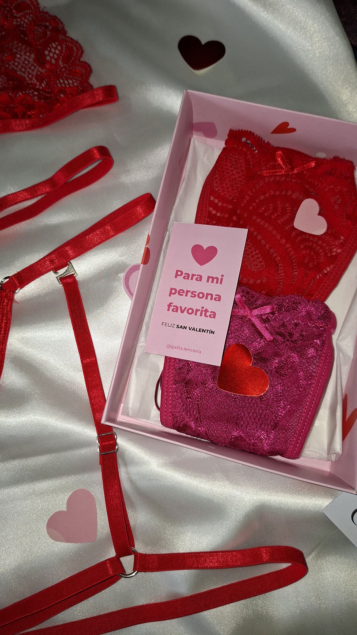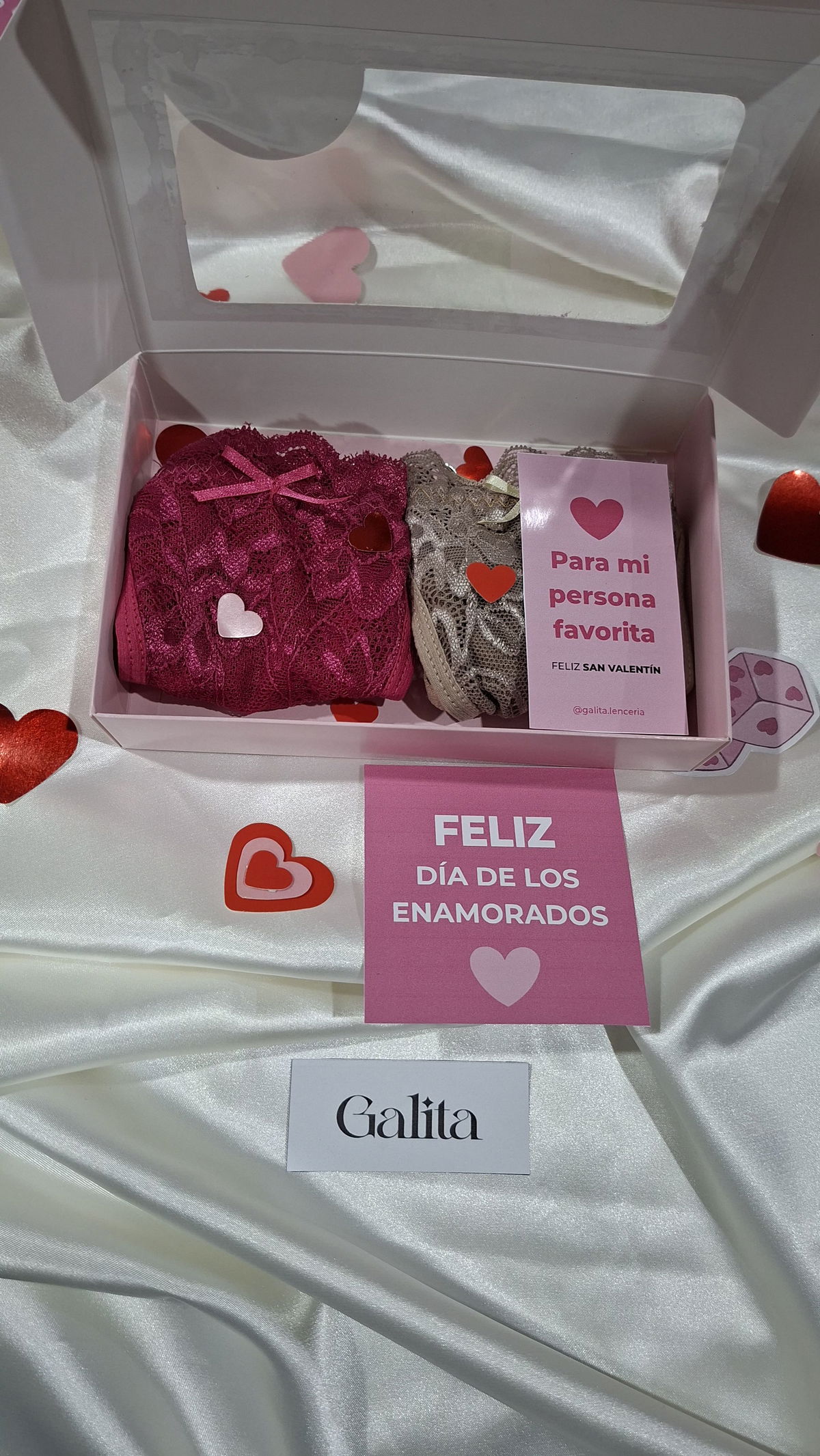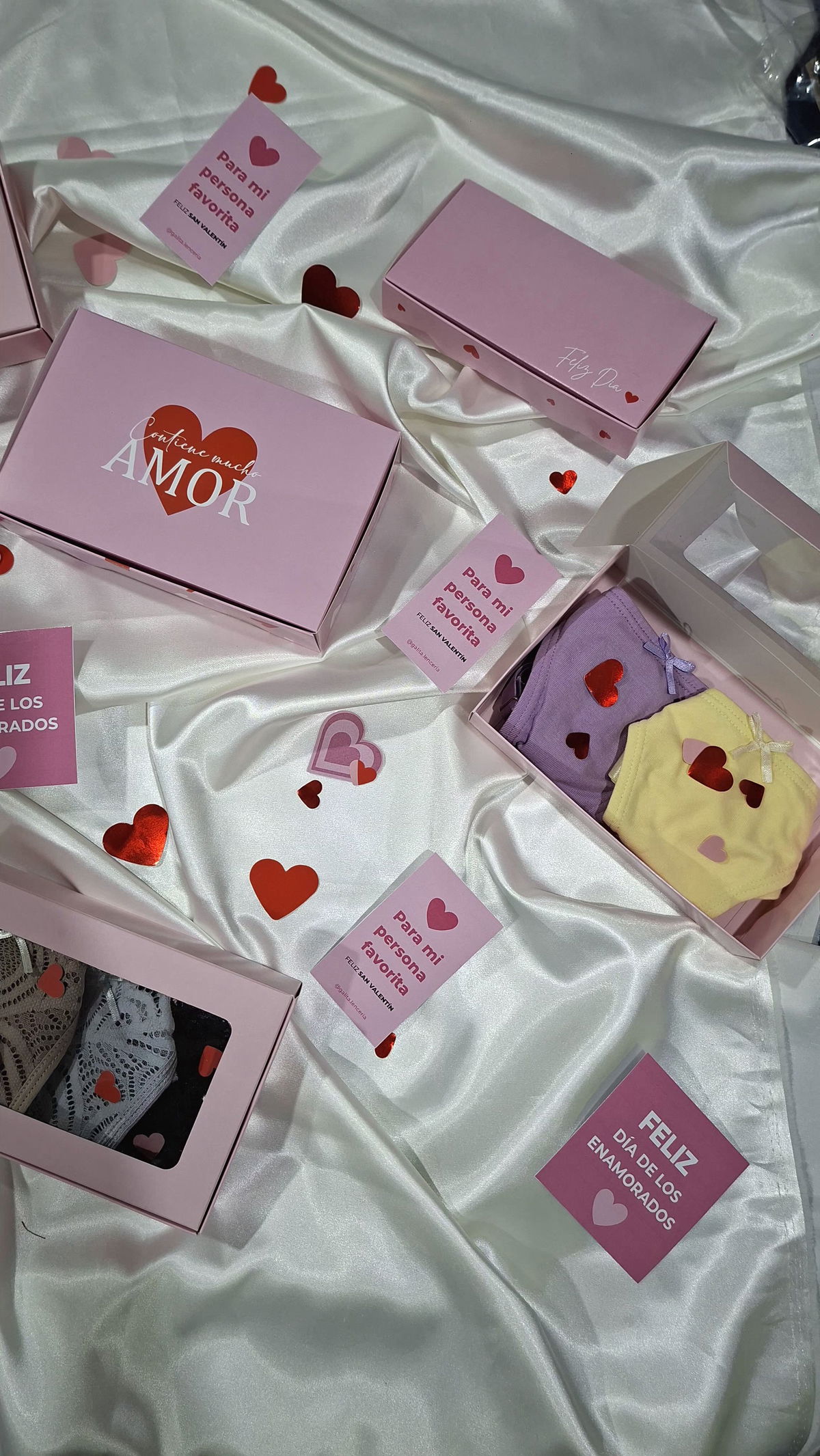 – Caja rosa San Valentín (con tapa "Contiene mucho amor")